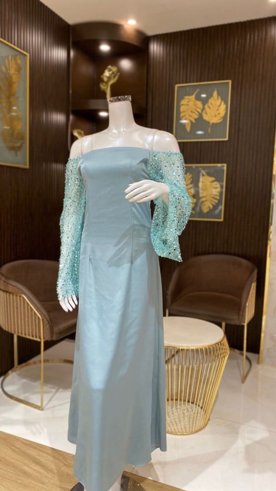 استمتعي بجاذبية لا تُقاوم مع فستان برنسيسة بأكمام مطرزة الذي يعكس الأناقة والرقي في كل تفصيلة.