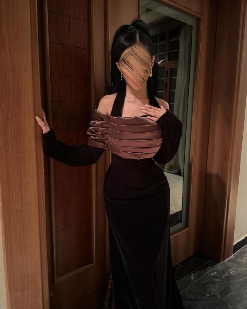 فستان سهرة بني مخمل | فخامة وأنوثة بإطلالة راقية | صبايا فاشون