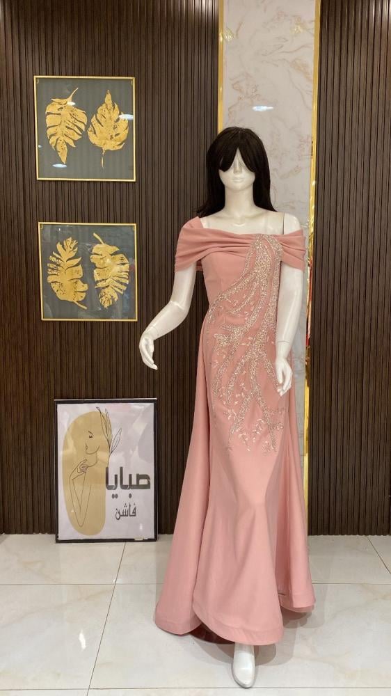 - التصميم: قصّة أنثوية أنيقة بتفاصيل ناعمة، مثالية للسهرات والمناسبات الفخمة.