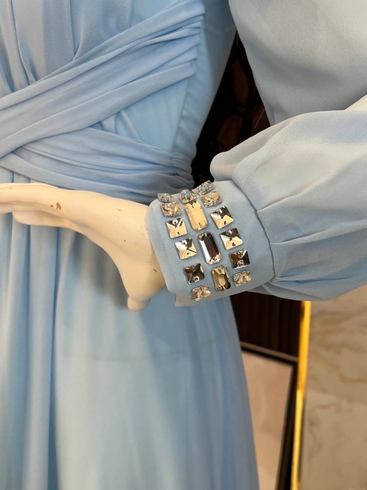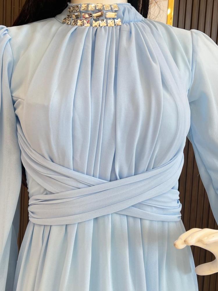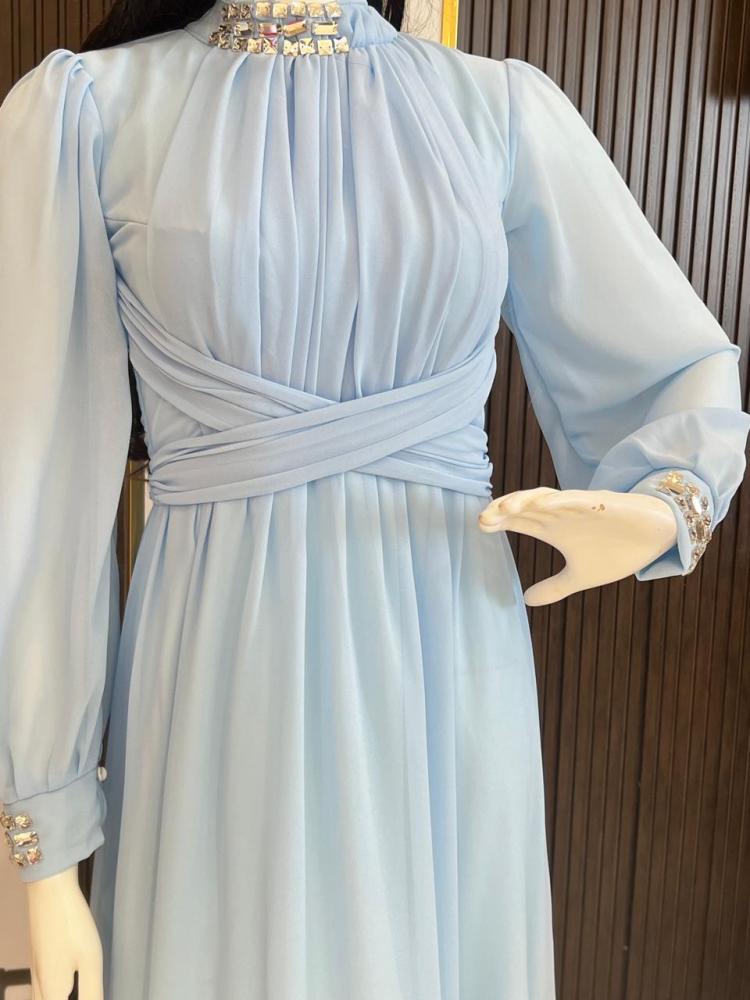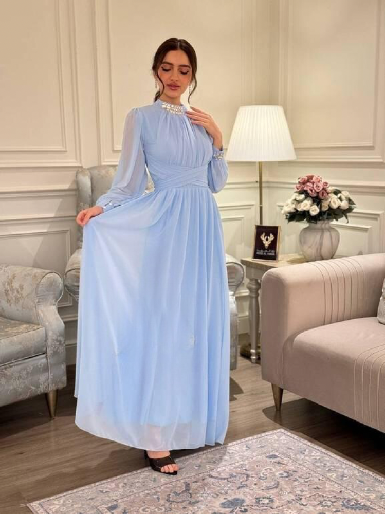 فستان سهرة شيفون سماوي - أناقة ورقي لأمسية ساحرة