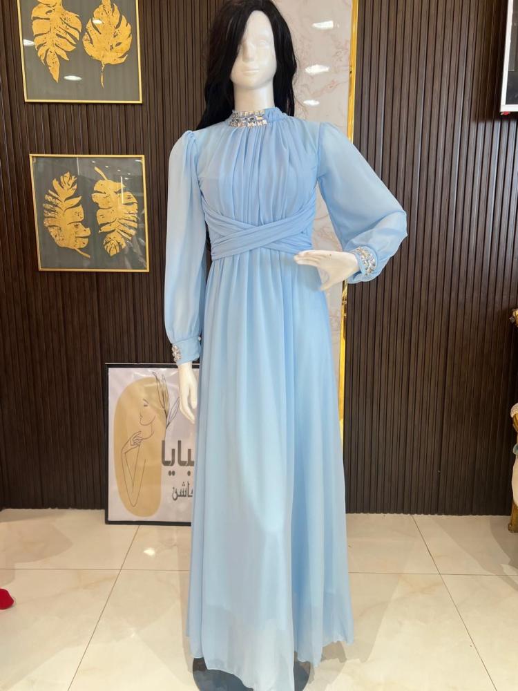 اختاري فستان سهرة شيفون سماوي من صبايا فاشون وتمتعي بإطلالة رائعة مليئة بالأناقة والرقي في كل مناسبة خاصة.