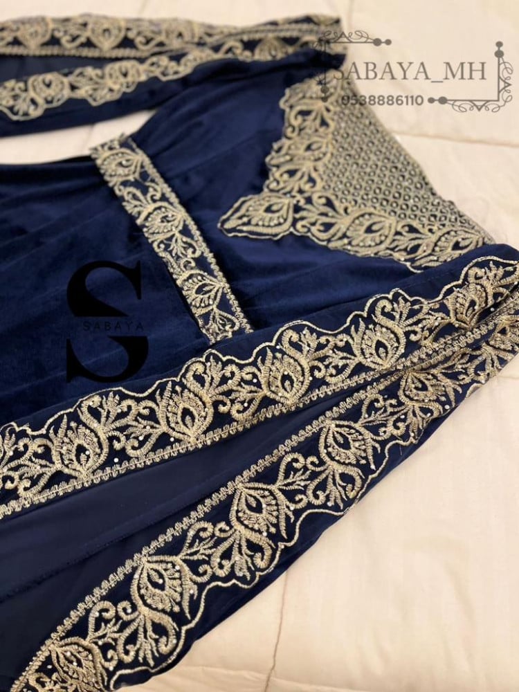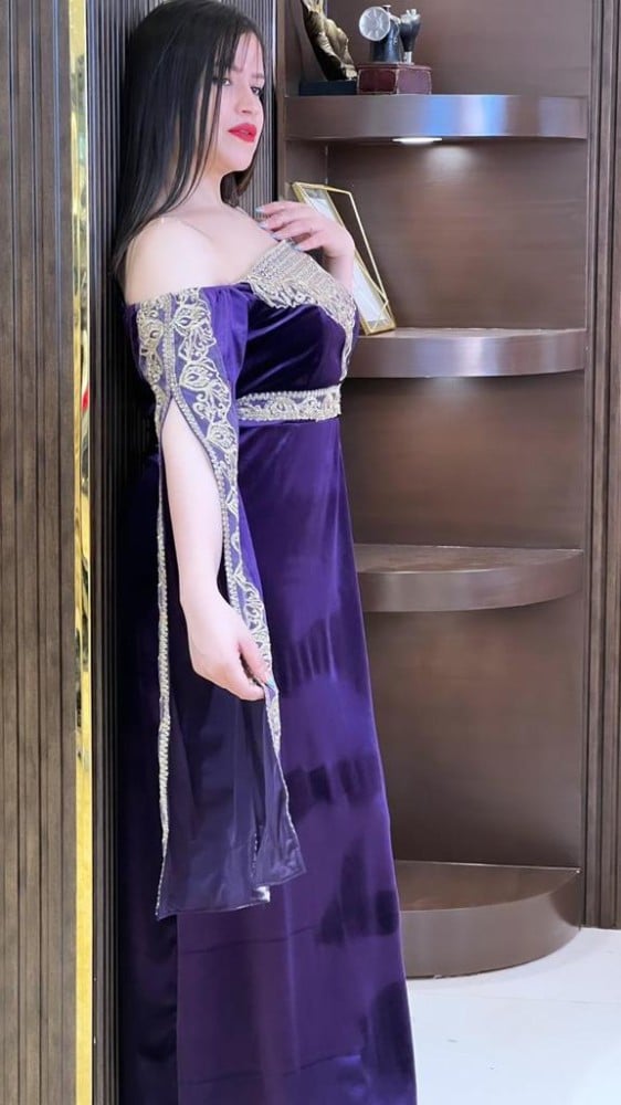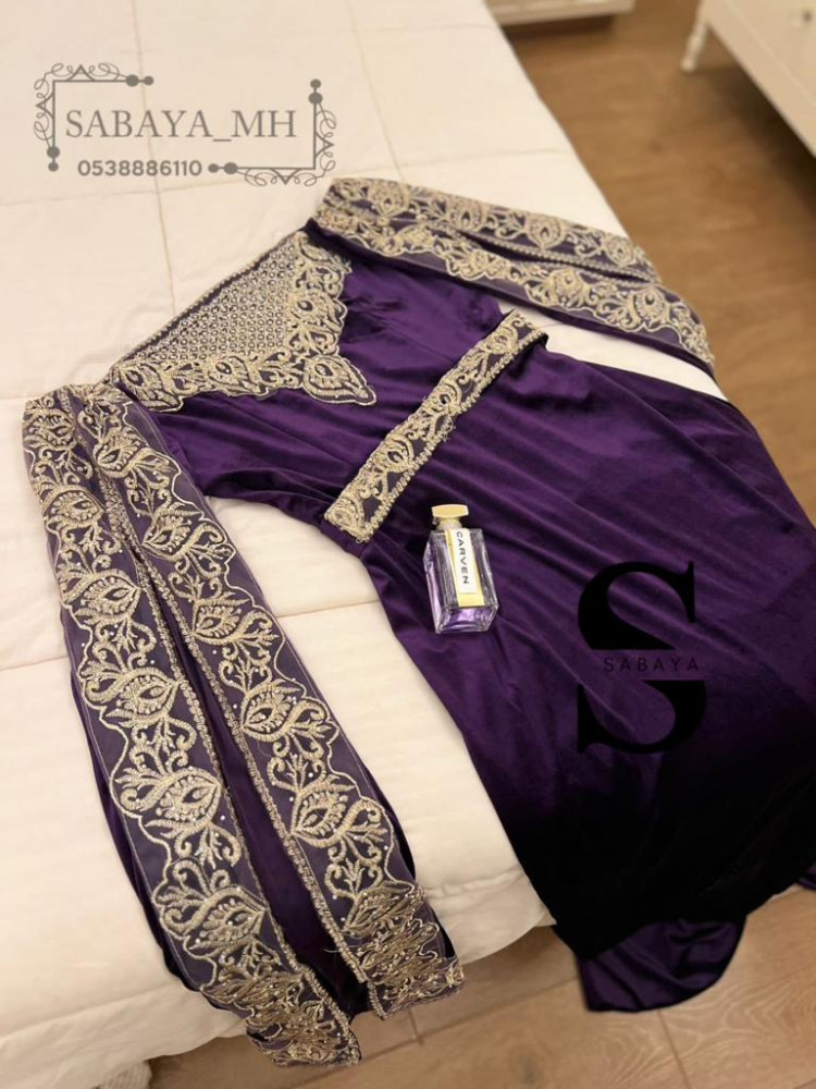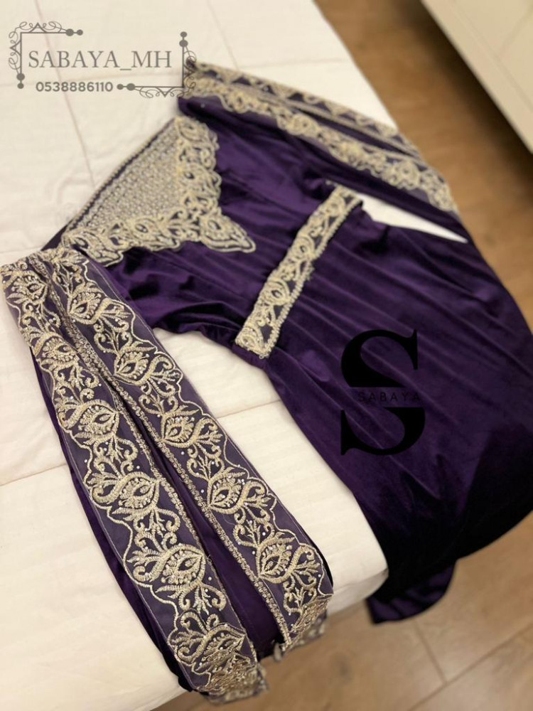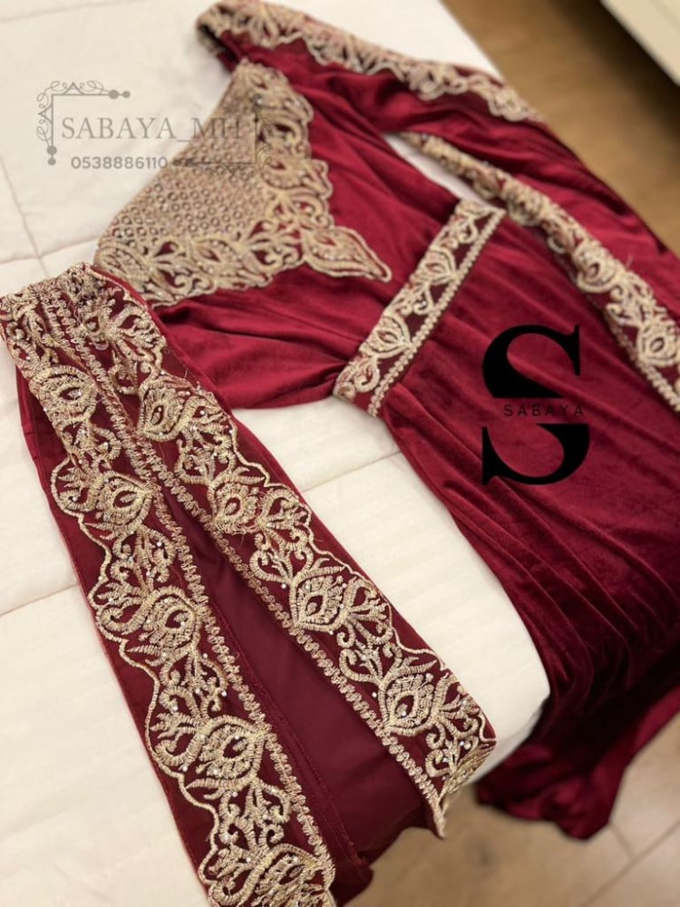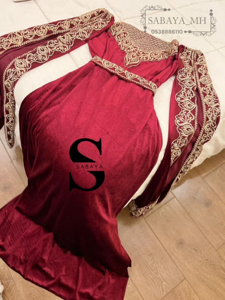 فستان غمرة مخمل اكمام مطرزة