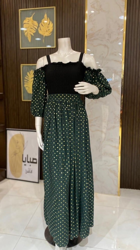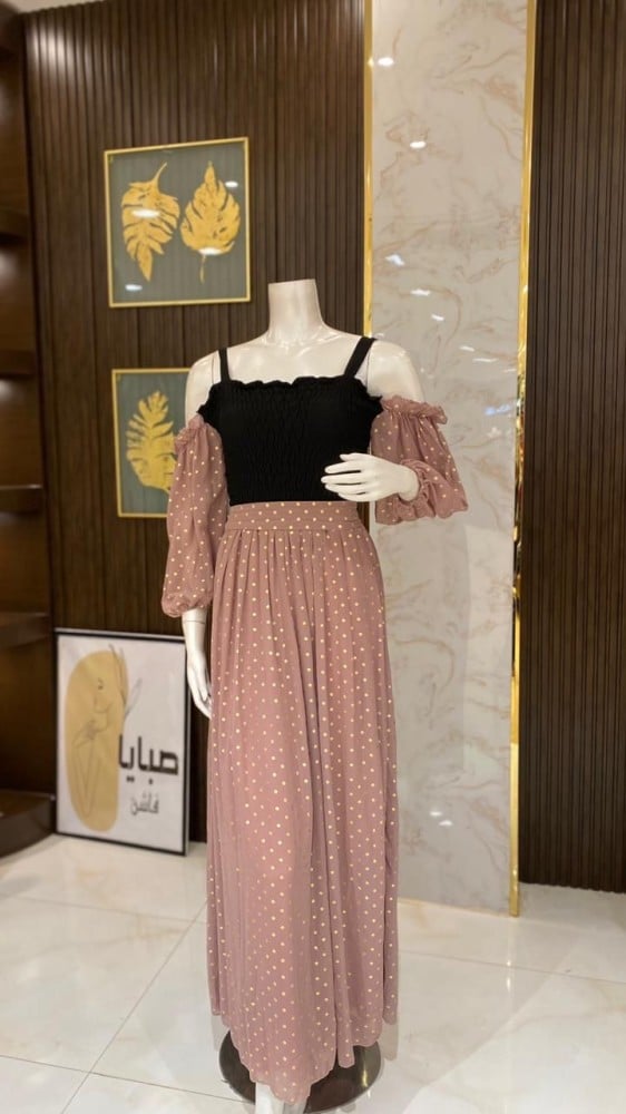 - المواد: قماش فاخر يوفر راحة وأناقة طوال اليوم أو السهرة، مع لمسات من اللمعان تضيف رونقًا خاصًا.