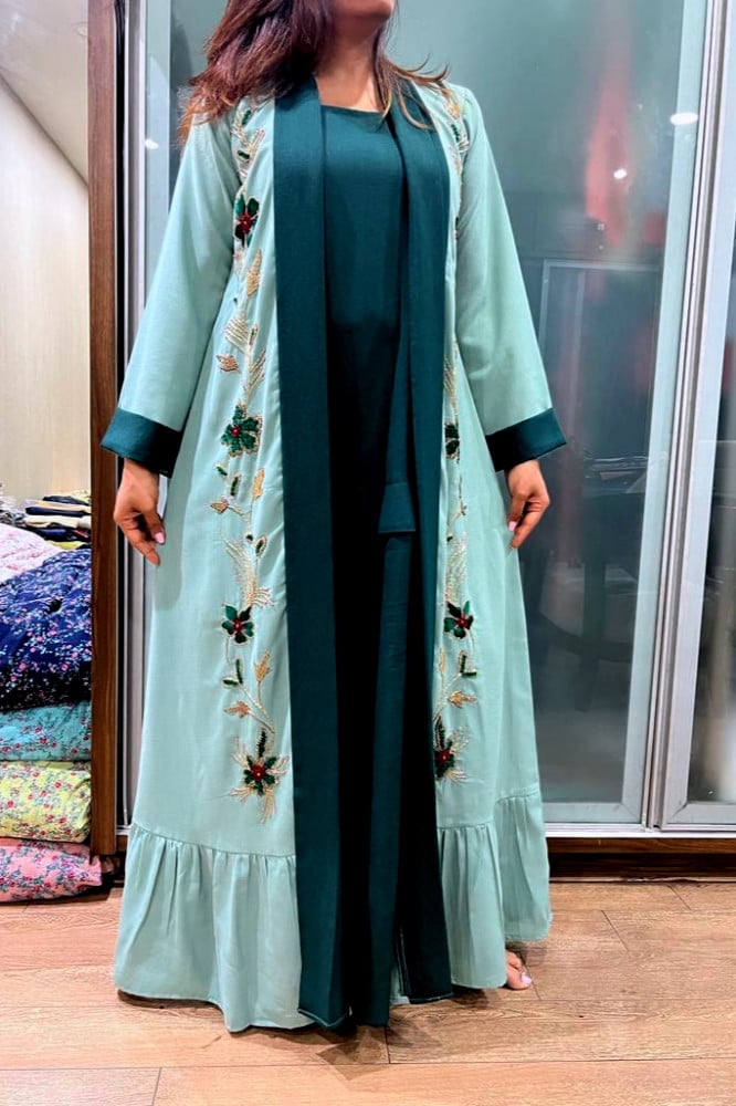 ارتقي بإطلالتك مع هذه الجلابية الكويتية الفاخرة ذات التصميم الكلاسيكي والتطريز الأنيق على الأطراف، لتمنحك لمسة تراثية بلمسات عصرية ساحرة. مثالية للمناسبات والأوقات الخاصة.