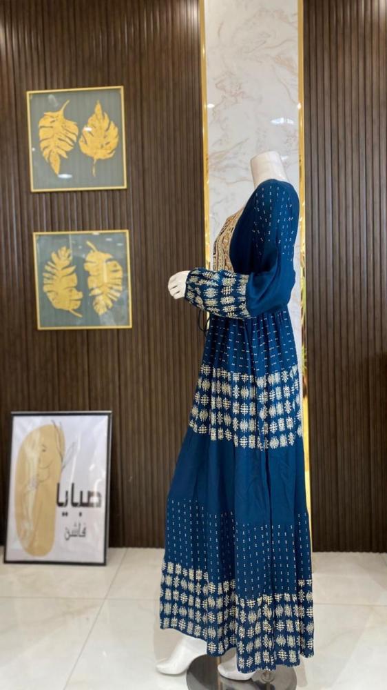 اختاري جلابية هندية بتطريز صدر ذهبي لتتألقي بإطلالة أنثوية تجمع بين التراث والجمال الفاخر. تصميمها الهندي التقليدي مع التطريز الذهبي على الصدر يضفي لمسة من الفخامة التي تناسب المناسبات الخاصة والاحتفالات الراقية.
