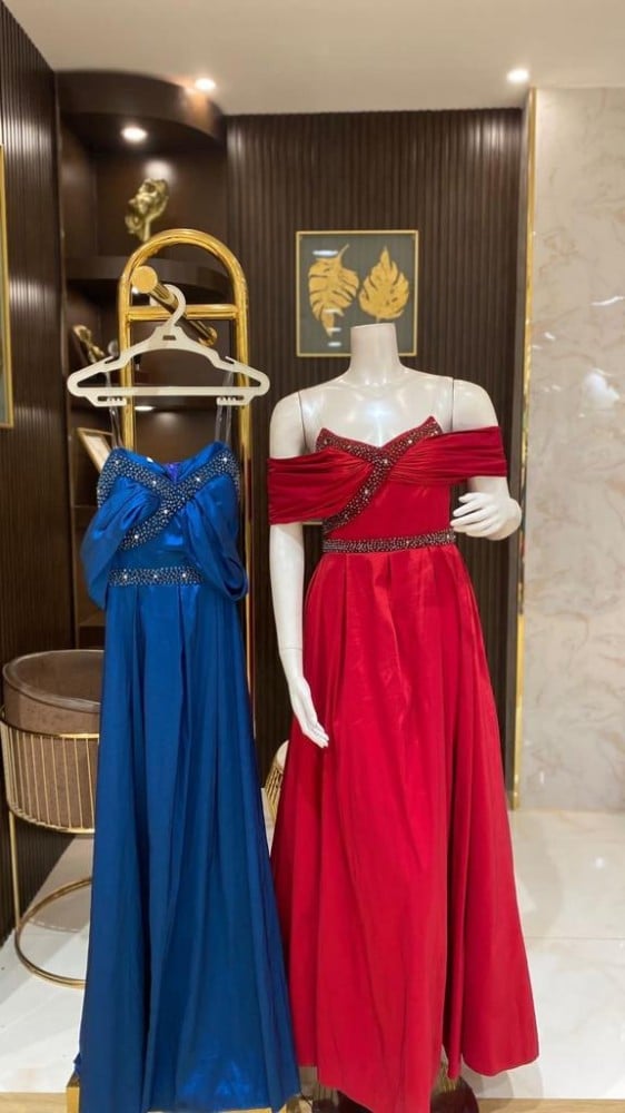 فستان سهرة شانتون فصوص صدر